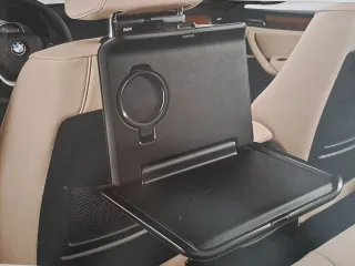 Mesita/Bandeja plegable y desmontable para asientos traseros de BMW y Mini. Ideal para viajes. Incluye soporte para enganche en reposacabezas. Nuevos en caja originales. - Diseño en color negro. - Incorpora un soporte para bebidas. - Fácil de instalar y retirar. - Accesorio original BMW/Mini