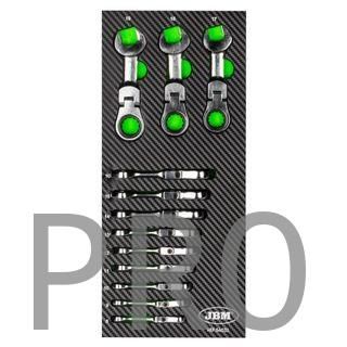 SET DE 12 LLAVES MINI COMBINADAS ARTICULADAS CON TRINQUETE Medidas: -8mm (89mm) -9mm (94mm) -10mm (95mm) -11mm (99mm) -12mm (102mm) -13mm (107mm) -14mm (114mm) -15mm (117mm) -16mm (123mm) -17mm (125mm) -18mm (130mm) -19mm (135mm) 72T Medidas del módulo: 176x392mm PRODUCTO NUEVO MARCA JBM ENVIAMOS A TODA ESPAÑA