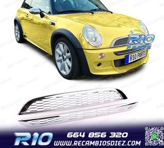 Móvil: 664 856 320 - Referencia: RLC013332. PARRILLA MINI COOPER R50 R53 01-06 S TYPE CROMADA Válido para: Mini Cooper R50 R53 (2001-2006) Sustituye la Parrilla Original de Serie Especificaciones: Material: Plástico ABS Color: Cromado Montaje. Instalación sencilla, directamente en los anclajes originales del vehículo. ABS. Fabricado en plástico de alta calidad para asegurar resistencia y larga durabilidad. Imagen. Dale un toque más deportivo al vehículo con esta parrilla. Estos no son productos originales de la marca MINI. El artículo ofrecido, solo es compatible para los modelos