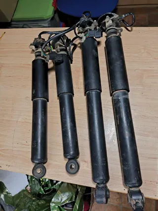 Juego de 4 amortiguadores regulables en 3 posiciones para Mitsubishi Montero V20. Regulación eléctrica desde el mando interior del coche. - Amortiguadores delanteros y traseros. - Regulables en dureza. - Originales marca Kayaba - Actuador eléctrico incluido.