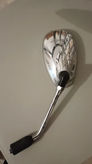 Retrovisor derecho para Piaggio Carnaby. Pieza de repuesto con acabado cromado. - Diseño ovalado. - Brazo metálico cromado. - Empuñadura negra.