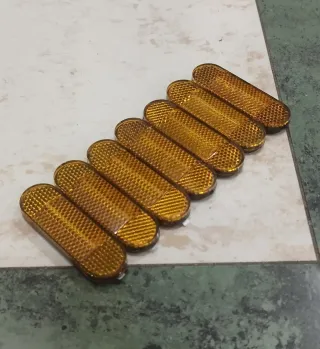 Vendo Set de 7 Reflectantes Naranjas para Piaggio Zip. Piezas de repuesto para mejorar la visibilidad. Son Compatibles para Ciclomotor, también para Piaggio o Yamaha 49cc. Sirve para Yamaha Jog, Aerox, Vespa ET2, Zip, NRG, Gilera, Liberty, Neos, NTT... - Color: Naranja. - Material: Plástico. - Diseño: Ovalado con textura. - Precio por pareja. Tengo más piezas y hago envíos!
