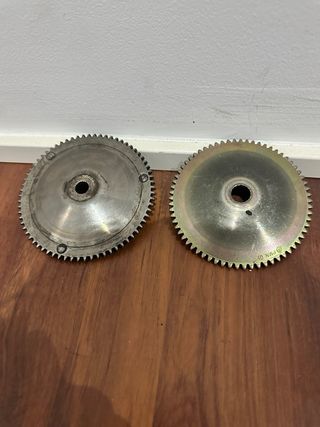 Poleas para piaggio en muy buen estado , una es ventilada y no es la de serie modelo PM FA1/2 y la otra proviene de una piaggio zip orinal que esta un poco mas desgastada , la original 15 y la ventilada 20 , las dos por 30