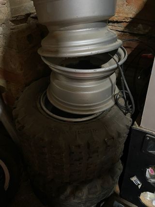 Se vende juego de ruedas para LTZ / KFX / TRX en buen estado. Pierden algo de aire si llevan mucho tiempo sin usarse y tienen algún golpe/mordida que adjunto en las fotos, nada que no tengan unas llantas de monte que se hayan usado. Perfecto para un segundo juego de ruedas. Se podría mirar para enviarlas. ltz400 trx400 kfx400 trx450 kfx450 ltr450 Suzuki honda Kawasaki trx 400 450 ltz kfx ruedas neumáticos llantas cubiertas