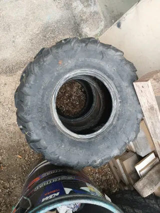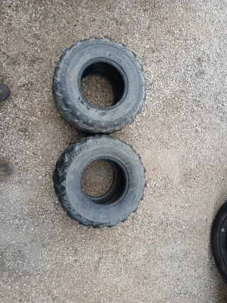 Conjunto de neumáticos para quad. Neumáticos traseros marca veloce 20-11-9 a más de medio uso los delanteros marca sunf 21-7-10 están perfectamente intactos.