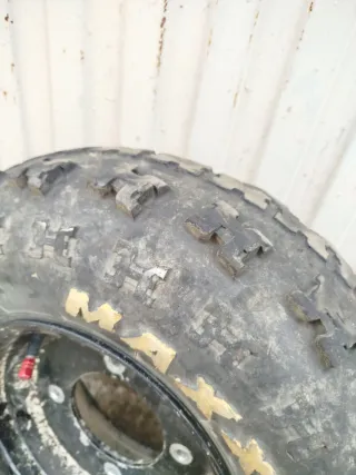 Llantas reforzadas para un quad KFX 450, valido para Ltz, gasgas Wild, o honda trx. Tienen algún golpe como se puede ver en las fotos, y los neumáticos son prácticamente nuevos.
