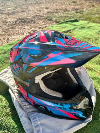 Casco Shoei con un diseño vibrante en azul y rosa, ideal para off-road, motocross o supermoto. Incluye una bolsa protectora. Como Nuevo, Usado Solo 2 Veces Vendo casco Shoei original (talla S – 55-56 cm) en estado impecable, usado solo 2 veces. Está prácticamente como nuevo, sin golpes, sin caídas y con el interior muy cuidado. 🔹 Precio nuevo: 440 € 📌 Detalles: • Marca: Shoei • Modelo: wfx w • Talla: S (55-56 cm) • Uso: 2 veces • Estado: Excelente (como nuevo) Perfecto para motocross, enduro, quad o dirtbike. Calidad premium japonesa