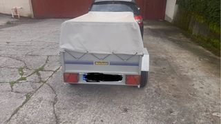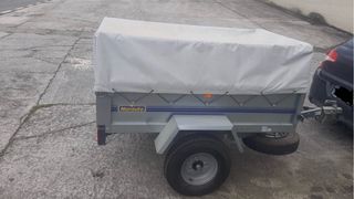 Remolque Norauto en buen estado, usado solo dos veces. Incluye rueda se recambio y toldo. - Kilometraje: 3000 km. - Color: Gris con detalles azules. - Toldo: Gris. Medidas: - Largo 1,50 m - Anchura 1 m - Altura caja 0,32 cm - Altura toldo 0,30 cm