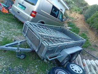 Remolque de carga metálico con dos ejes. - Estructura robusta de metal. - Ruedas de buen tamaño. - Rueda jockey delantera. - Luces traseras. Dimensiones de 2,40m por 1,36