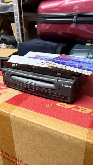 Sistema de navegación Carminat para Renault Laguna I Fase 2. Todo funcionando y original. El estado es bastante bueno, la carcasa tiene algun roce, ya que se saco un molde a partir de ella. - Incluye manuales Tengo 2 juegos iguales, solo 1 carcasa para la pantalla