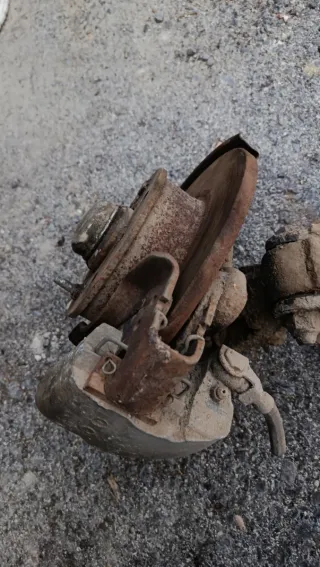 Conjunto de manguetas para Seat 850 Especial. Piezas de recambio para el eje delantero. - Manguetas delanteras. - Incluye disco de freno y pinza. También se dispone de la ballesta con soporte y barra estabilizadora