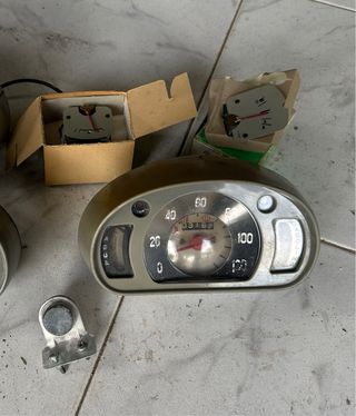 Conjunto de indicadores para Seat 600 de la primera serie. - Indicador de combustible. - Velocímetro. - Reloj.