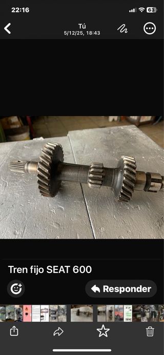 Eje con dos engranajes para Seat 600. - Engranaje superior. - Engranaje intermedio. - Engranaje inferior.