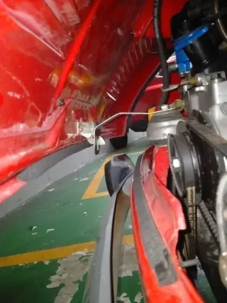 Soporte capó para mejorar la refrigeración del motor de Seat 600, va fijado a la rosca del soporte motor, bien con la propia tuerca o con otra tuerca por encima para girarlo más facil en caso no hacer uso de él. La cerradura encaja en el anclaje y se puede cerrar con llave. Mas recambios en mi perfil.