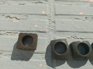 Conjunto de dados para transmisión de Seat. - Piezas metálicas. - Diseño cuadrado con interior circular. - Bordes texturizados.