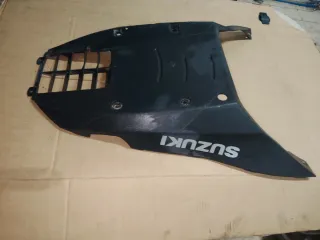 Pieza de plástico negro para Suzuki Burgman. - Compatible con modelos 125i y 200i. - Años de fabricación: 2007 a 2013. - Diseño con rejilla frontal. - Logotipo de Suzuki visible.