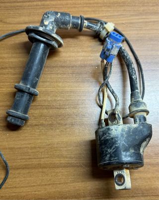 Conjunto de bobina y pipa para bujía de Suzuki LTR. - Bobina de encendido. - Pipa de bujía en ángulo.