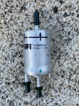 Filtro de gasolina para Volkswagen 2.0 TSI UFI con referencia 3184000. Se usó 2.000 kms. - Fabricado en China. - Indicador de flujo con flechas. - Conexiones para mangueras.