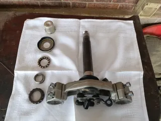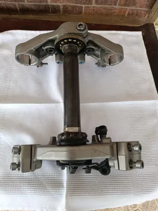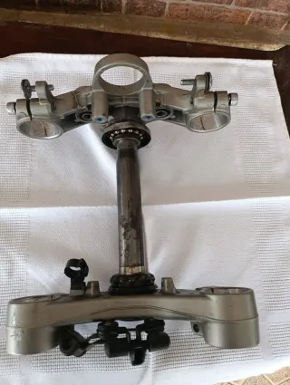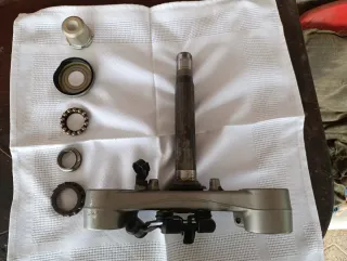 Tija superior e inferior para Yamaha MT-07. Incluye rodamientos superior e inferior. También tuercas superiores de la tija, sujeción del faro y toda la tornillería -limpia y engrasada. Lista para montar
