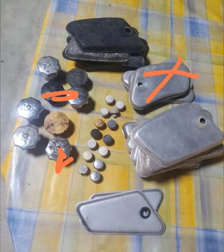 Se venden varias piezas para Mobilette en buen estado. Ideales para reparar o restaurar tu vehículo. - Incluye 10 tapas metálicas, algunas con señales de uso. - También se incluyen 17 pernos de diferentes tamaños y colores, algunos con desgaste. - Todas las piezas son usadas, pero se encuentran en condiciones aceptables. Tapones de gasolina de varias medidas. Precio según pieza