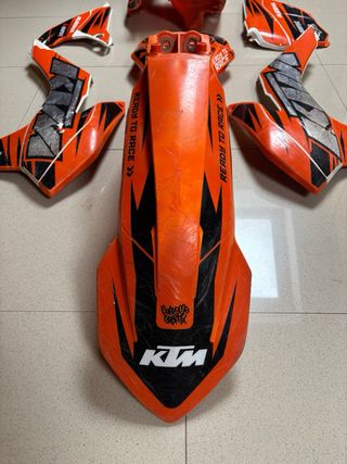Conjunto de plásticos naranjas para KTM EXC/EXC-F. Plásticos KTM EXC 2014-2016 originales en buen estado. Compatibles con KTM EXC y EXC-F 125, 200, 250, 300, 350, 450 y 500 (años 2014, 2015 y 2016). Ideales para sustituir plásticos dañados o renovar estética de la moto. Se entregan tal cual se ven en las fotos con posibilidad de envío. Precio algo negociable.