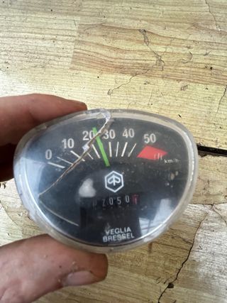 Disponible cuenta kilómetros / Marcador para Vespino SC de la marca Veglia Bressel . Muestra la velocidad en km/h y el cuentakilómetros. Para repuestos o arreglar carcasa marcador. - Velocímetro hasta 50 km/h. - Cuentakilómetros con 5 dígitos. - Logo de Piaggio. f18 elestart f9 sca sc gl gs vespino amal vespa 416 418 420 carburador dellorto pula axarco tavi mortadelo nl nlx yasuni zero buller artago metrakit al alx nl t3 velofax f18
