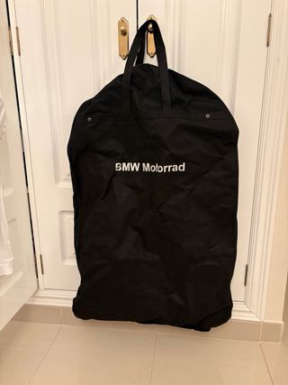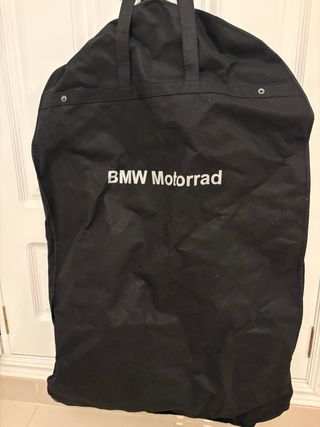 Bolsa de tela negra para traje de la marca BMW Motorrad. Ideal para transportar ropa o equipamiento. - Color negro. - Logo de BMW Motorrad impreso en blanco.