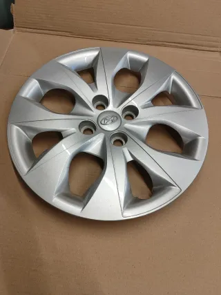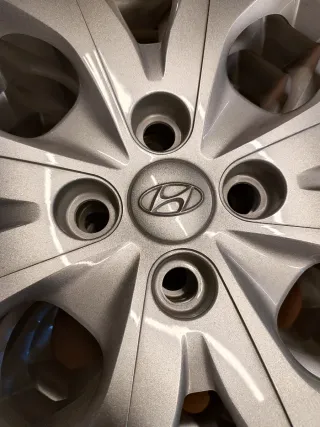 Juego de 4 tapacubos plateado para Hyundai i20. - Llanta 15". - Original Hyundai. - Sin uso.