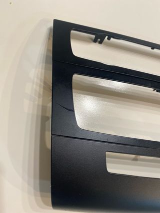 Marco embellecedor para el sistema de climatización de un BMW E87. Pieza de plástico negro mate. - Diseño de tres niveles. - Acabado negro.
