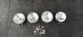 Set de faros auxiliares Hella y Carello, ideales para vehículos clásicos o de competición. Incluye soportes y tornillería. - Dos faros Hella. - Dos faros Carello. - Soportes de montaje. - Tornillería completa. Estaban montados en un 4x4, funcionan perfectamente. Incluyen las bombillas, alumbran muchísimo con una imagen clásica sin recurrir a barras de led. Incluyes los soportes inox y tornillería para soldar a la barra delantera o trasera de un pick Up. Son originales de Ford fiesta xr2 o escort xr3. Se pueden utilizar para imagen de rallyes en tu vehículo clásico.