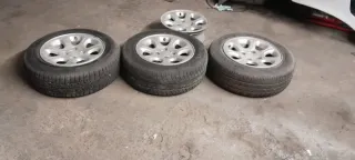 Juego de 4 llantas de aleación para Volkswagen Golf 4. Una de las llantas incluye neumático. Las 4 llantas están bien y son funcionales, lo único que una de ellas tiene el canto un poco roto, pero se puede montar el neumático y no pierde aire. Son medida 5x100 en llanta de 15 pungadas