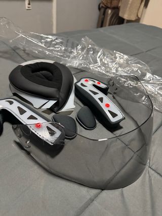 Visera tintada y forro interior para casco de la marca Crivit DS-MULTIX301 y Delta Sport DS-MULTIX301 modulares y mas modelos. Piezas de repuesto o para personalizar tu casco, nuevo sin estrenar. - Visera tintada. - Forro interior acolchado.