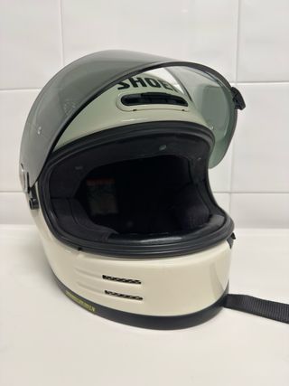 Vendo casco SHOEI Glamster original, color blanco, talla M (57–58). Casco usado, en buen estado general, con marcas normales de uso. No ha sufrido golpes ni caídas. Interior en buen estado y totalmente funcional (ver fotos). Incluye: • ✅ Pantalla oscura ORIGINAL SHOEI • ✅ Pantalla transparente original • ✅ Mecanismo de visera y cierre en perfecto funcionamiento Modelo muy valorado por su estética retro, comodidad y calidad premium de Shoei. Ideal para motos café racer, scrambler, custom o naked. Estado ✔ Usado ✔ Sin golpes ni caídas ✔ Interior en buen estado ✔ Bien cuidado