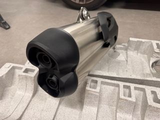 Tubo de escape original para BMW C 650 Sport. Fabricado en acero inoxidable con protector en negro. Original y a estrenar. - Diseño deportivo y robusto. - Acabado cepillado.