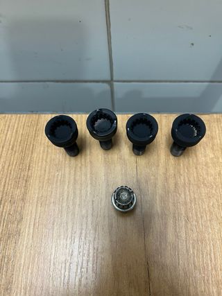 Juego de 4 tornillos antirrobo para BMW. Incluyen una llave especial para su montaje y desmontaje. - Diseño de seguridad. - Acabado en negro. M 12x1.5