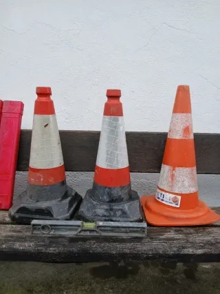 Lote de elementos de señalización para tráfico, obras o eventos.