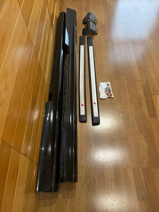 Juego de bacas de coche ajustables, ideales para transportar equipaje o equipamiento deportivo. - Longitud de 130 cm. - Diseño regulable para adaptarse a diferentes vehículos. yo las usaba para el peugeot 307 SW y me encajaban de maravilla