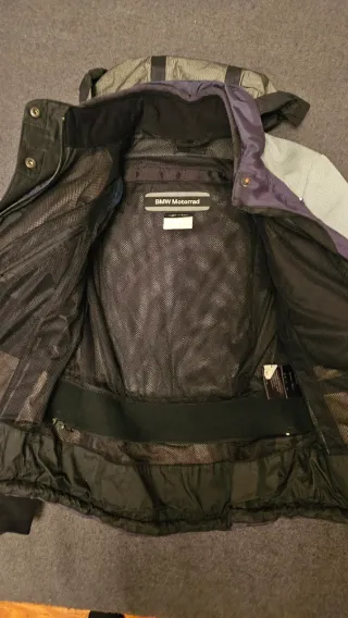 Chaqueta de moto BMW para mujer, serie Ligt and easy. Impermeable. Protección de codos y espalda.Capucha integrada. Necesita arreglo por los laterales (desgasto de la tela). Talla 36 (S)