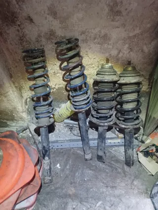 Conjunto de muelles de suspensión para Ford Fiesta MK3. Se venden los cuatro elementos. - Muelles delanteros y traseros. - Listos para instalar. -Muelles marca eibach,bajan unos 3.5/4 cm. -Valido para ford fiesta mk3.