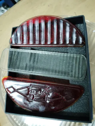 Piezas de recambio para Buick de 1929. Incluye dos cristales de las luces traseras rojas y una cristal faro delantero. - Diseño con el logo de Buick grabado en una de las luces. - Piezas con acabado en rojo y transparente.