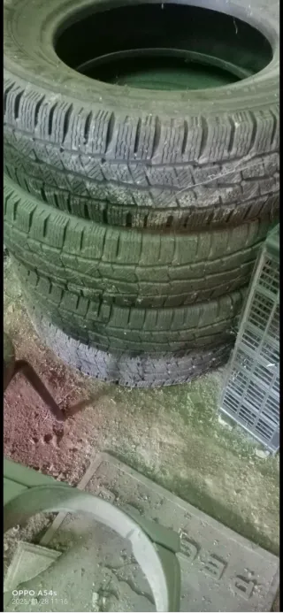 Conjunto de llantas de coche usadas. - Material: Goma. - Color: Negro.