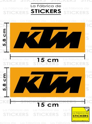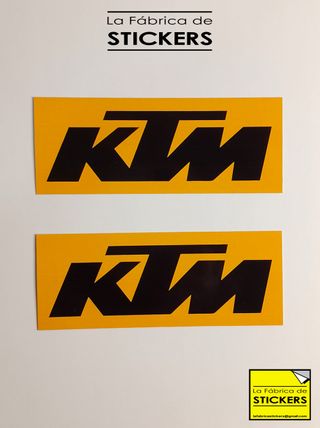 Pack con 2 stickers/pegatinas de vinilo impreso con el logotipo de la marca austriaca de motos KTM. - Vinilo polimérico impreso, hasta 7 años en exteriores. - Impresión de alta calidad. - Colores: Naranja y negro. - Tamaño: 15cm x 5,8cm. - Acabado brillante. - Disponible en diferentes tamaños y colores. - Resistentes al agua y a la intemperie. - Posibilidad de hacer lotes con diferentes stickers/pegatinas. La Fábrica de Stickers vinilos stickers adhesivos ktm motos motor tuning accesorios pack de pegatinas coches