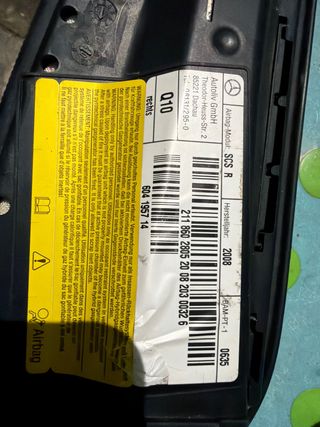 Módulo de airbag para asiento de Mercedes-Benz W211. - Fabricante: Autoliv GmbH. - Modelo: SCS R. - Año de fabricación: 2008. - Número de pieza: 604 1957 14. - Código de homologación: BAM-PT-1 0635.