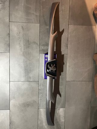 Moldura para el golpe delantero o trasero de un Peugeot 206. Pieza de recambio con el emblema de Peugeot. - Emblema Peugeot incluido. - Diseño aerodinámico.