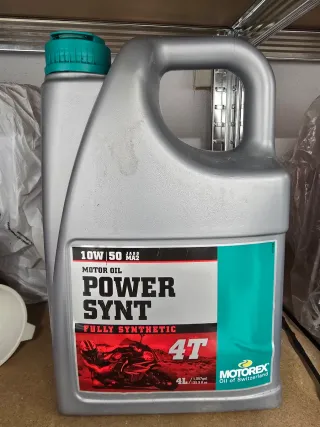 Aceite Motor Motorex Power Synt 4T 10W/50 4 Litros. 4 Litros. Aceite totalmente sintético de alto rendimiento para motores de 4 tiempos, especialmente desarrollado para el uso exigente en motocicletas hiperdeportivas con motores potentes. Estos lubricantes proporcionan a los motores, cajas de engranajes y embragues una protección óptima en toda la gama de aplicaciones. La aprobación JASO MA2 garantiza el funcionamiento sin fallos de los embragues de discos múltiples húmedos.