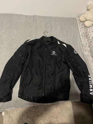 Chaqueta de moto de verano de la marca Armure en color negro. Diseñada para ofrecer comodidad y protección en climas cálidos. - Tejido de malla transpirable. - Cierres de cremallera. - Detalles reflectantes en blanco. - Talla XS