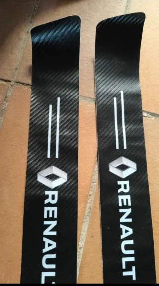 2 posa pies adhesivos puertas Renault carbono Nuevas y sin usar. Tienen un diseño elegante en color negro de carbono y el logo de Renault en plateado. - Ideales para personalizar tu coche. - Fáciles de colocar. - Diseño elegante y deportivo. MEDIDAS LARGO: 59 CM ANCHO: 7,5 CM TELEFONO 655 11 45 51