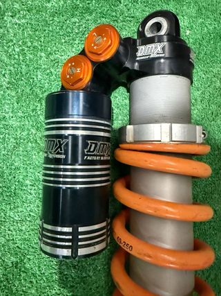 Amortiguador DMX para motos KTM EXC y SX. Diseñado para ofrecer un rendimiento óptimo valido para ktm husaberg y husqvarna creo que hasta el 2014. Preparacion full como si fuese el trax de wp. - Color naranja del muelle. - Cuerpo plateado y negro. - Marca DMX visible.