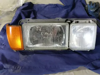 Conjunto de faros delanteros para Volkswagen Scirocco MK2. - Incluye intermitente naranja. - Faro principal con óptica rayada. - Faro auxiliar cuadrado.