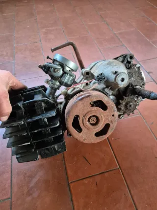 Motor de minicross Puch. - Cilindro refrigerado por aire. - Carburador incluido. - Volante magnético. - Piñón de ataque.